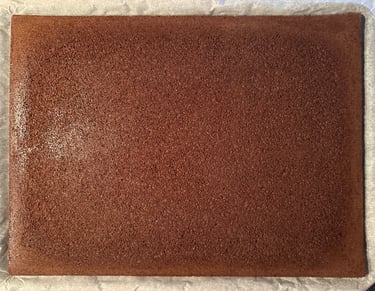 Dès la sortie du four, démouler la génoise sur une feuille de papier cuisson et réserver.