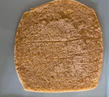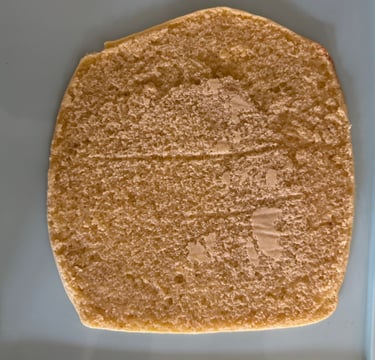 Ajouter un disque de frangipane de 5 cm diamètre dans chaque chou. Ne pas oublier de mettre une fève dans un des choux !