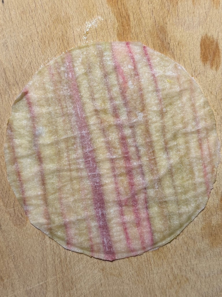 Les étaler une à une côte à côte sur une feuille de papier cuisson. Couvrir d'une deuxième feuille de papier cuisson, et réserver au congélateur bien à plat.