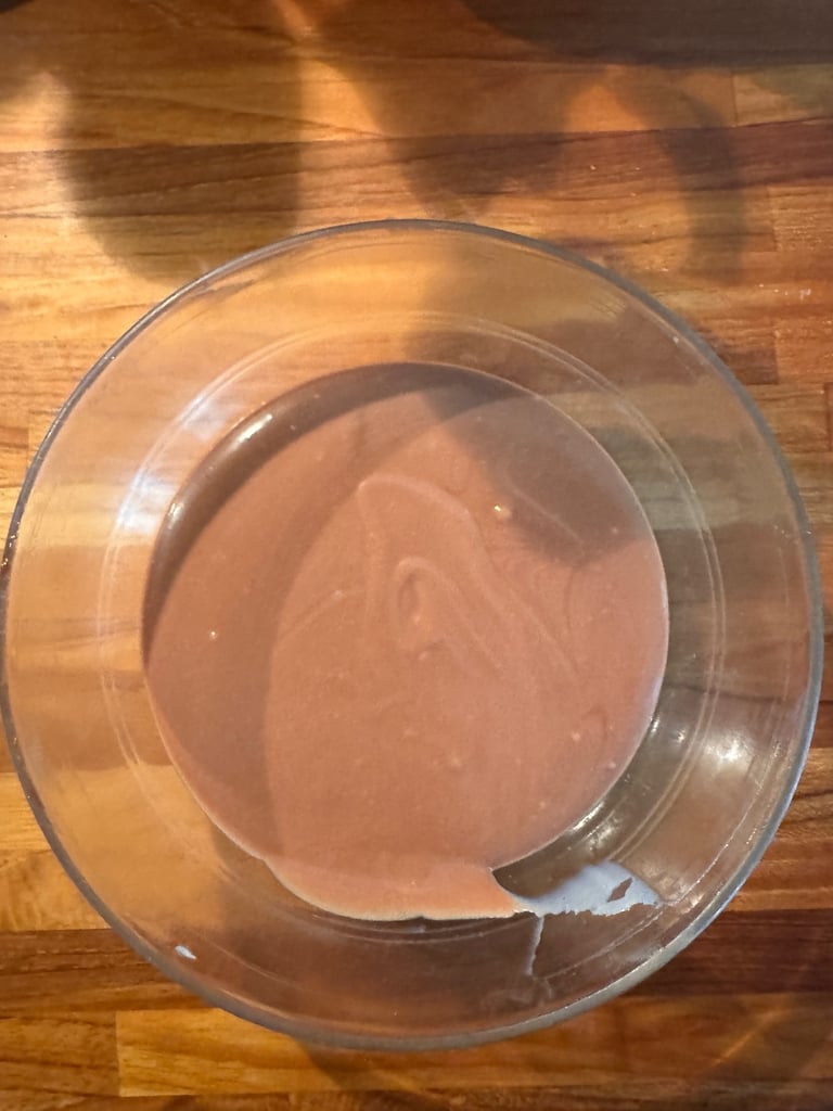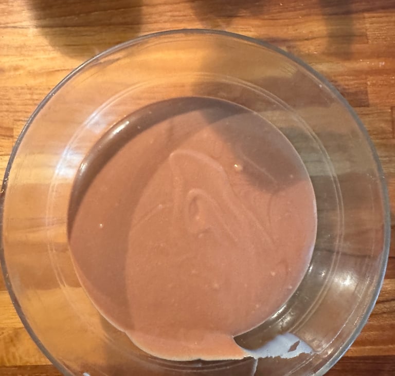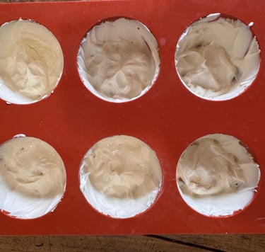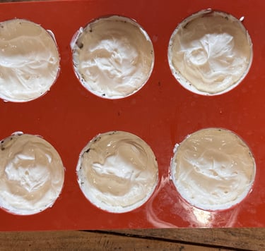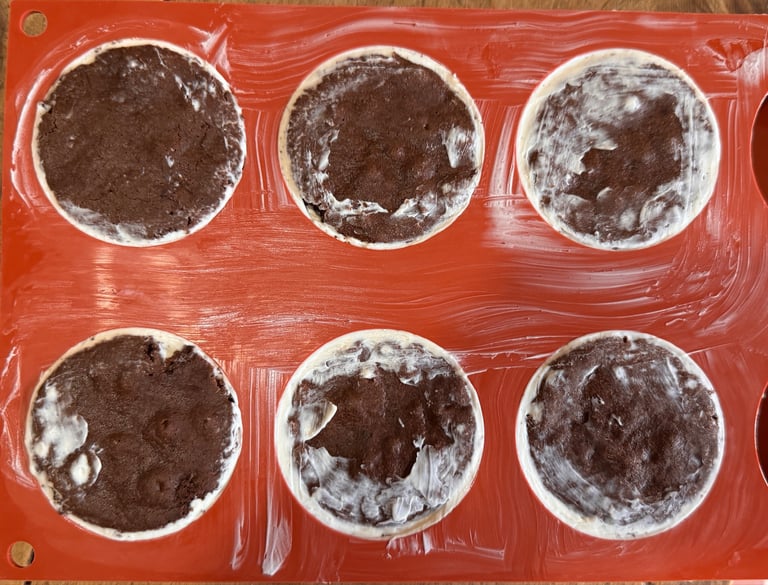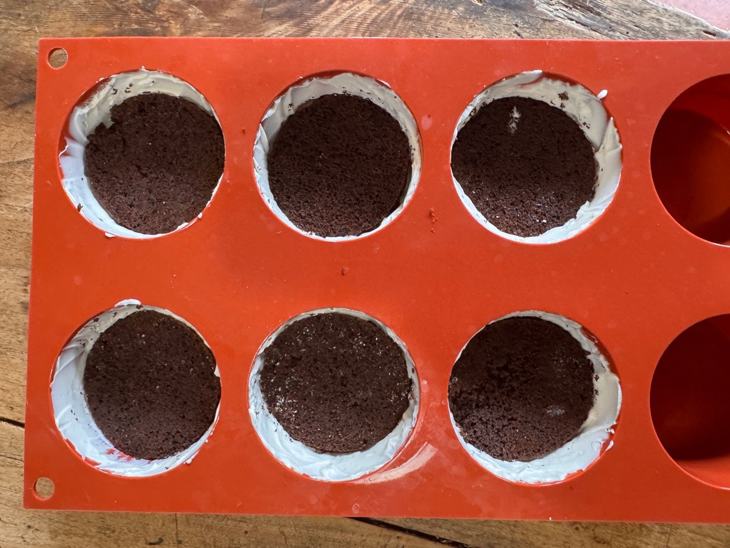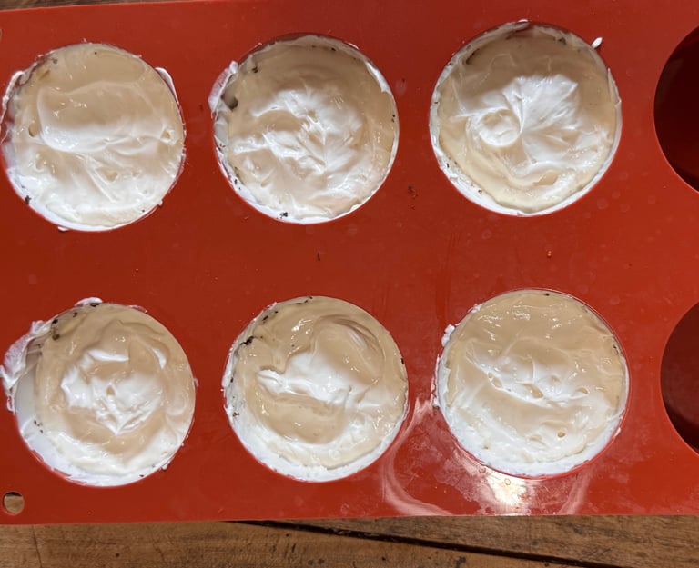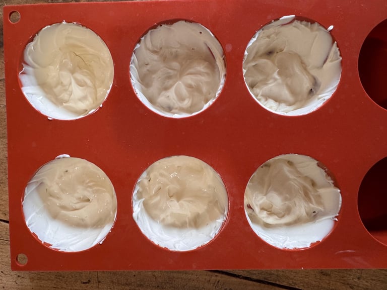 Disposer une belle cuillère à café de mousse vanille dans le fond de chaque moule, et faire remonter sur les bords.