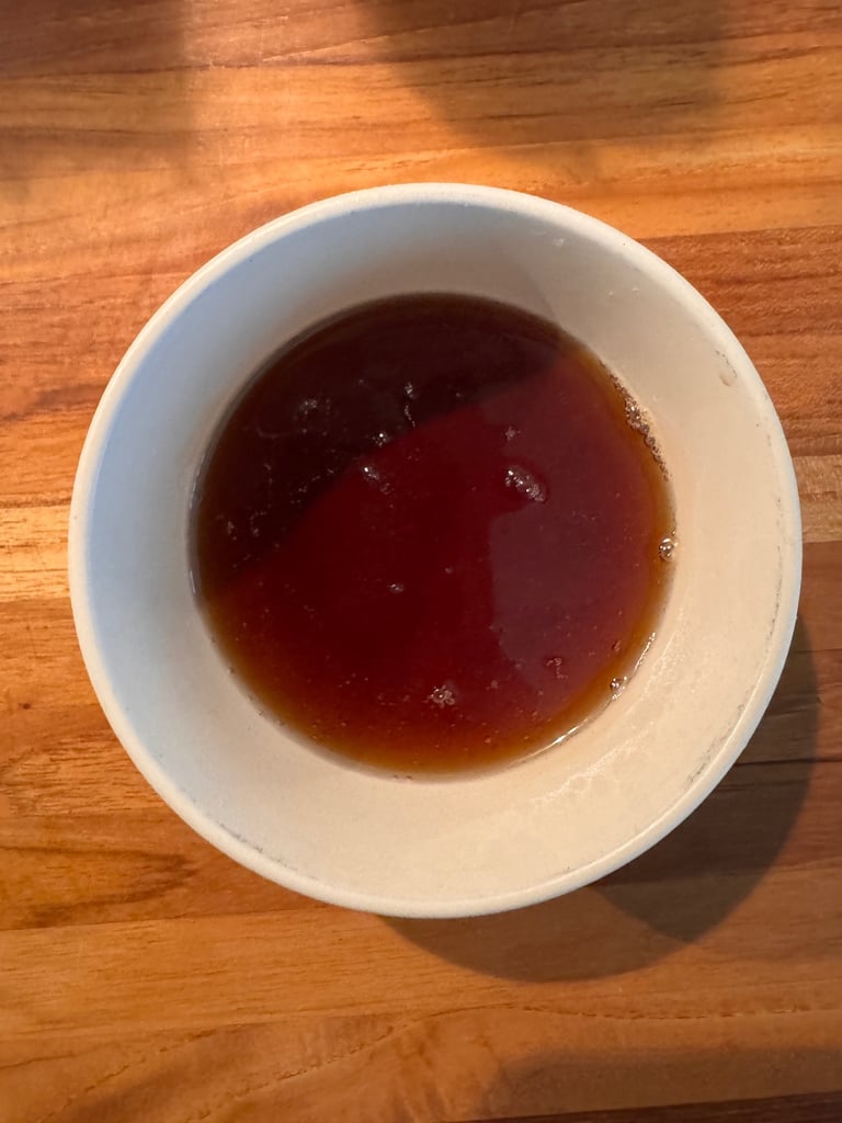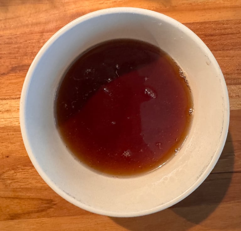 Faire chauffer l'eau, le sucre et la vanille liquide dans une casserole, jusqu'à léger épaississement. Réserver.