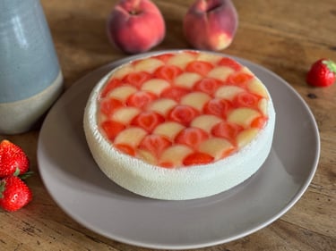 La pêche Melba a été inventée en 1894 par le célèbre pâtissier George Auguste Escoffier en l'honneur de la cantatrice Nellie Melba. Cet entremet met à l'honneur la pêche, mais, entorse à la tradition, la framboise est remplacée par la fraise pour plus de douceur et moins d'acidité. Le résultat est un entremet délicieusement parfumé, qui terminera à merveille un repas d'été.