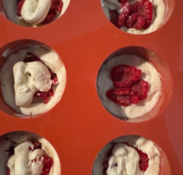 Egaliser la surface et réserver au congélateur jusqu'à ce que les entremets soient bien pris (minimum 3 heures).
