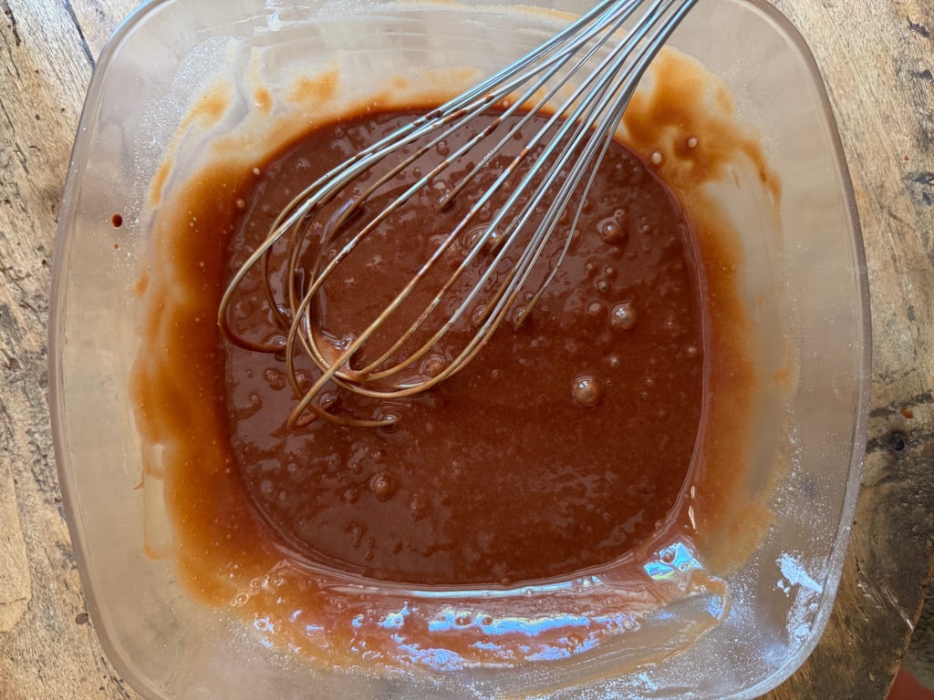 Faire fondre au micro-ondes à 400W le chocolat avec le beurre.