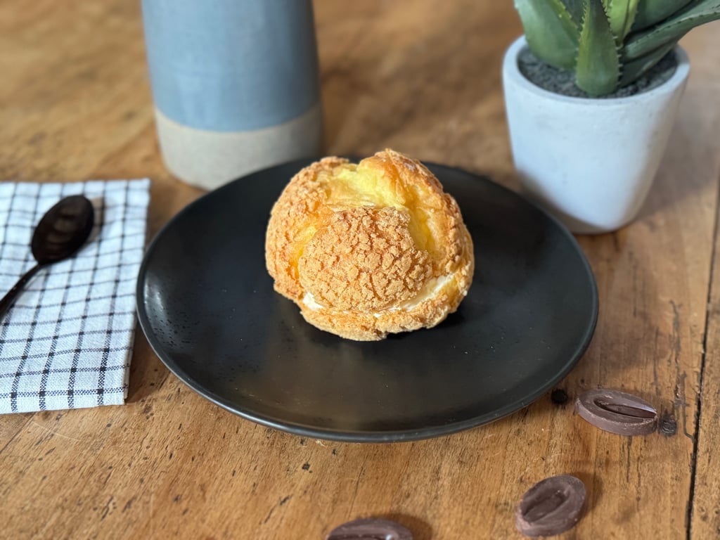 Dans les choux de grande taille : pocher un fond de crème diplomate à la vanille dans le fond et le chapeau du chou, disposer un chou de moyenne taille entre les deux parties, et compléter l'espace entre le fond et le chapeau avec de la crème diplomate à la vanille.