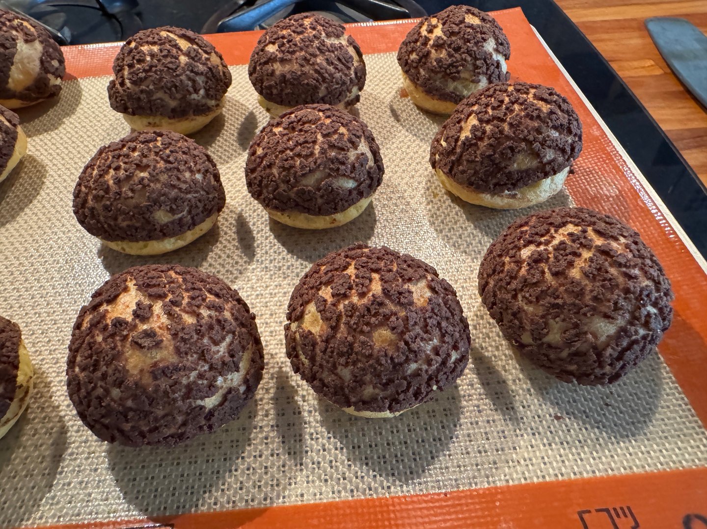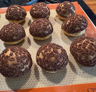 Démouler les demi-sphères de pâte à choux et les mettre sur une plaque.