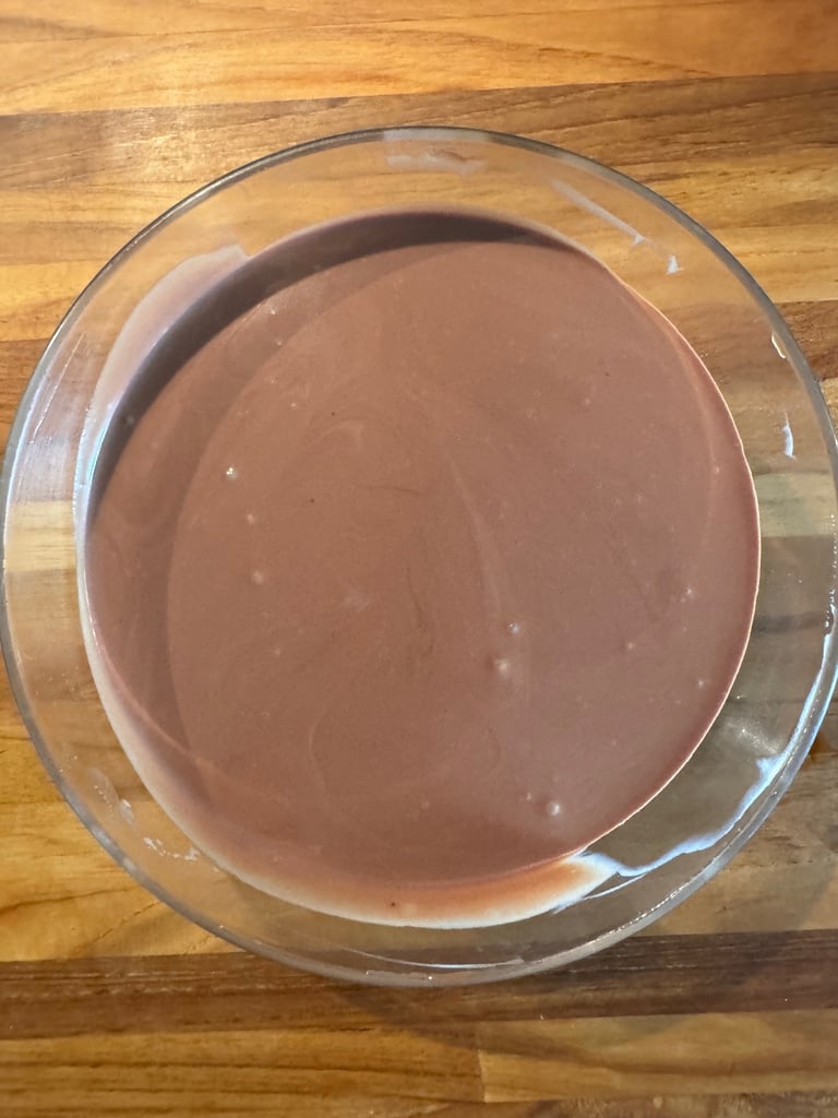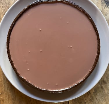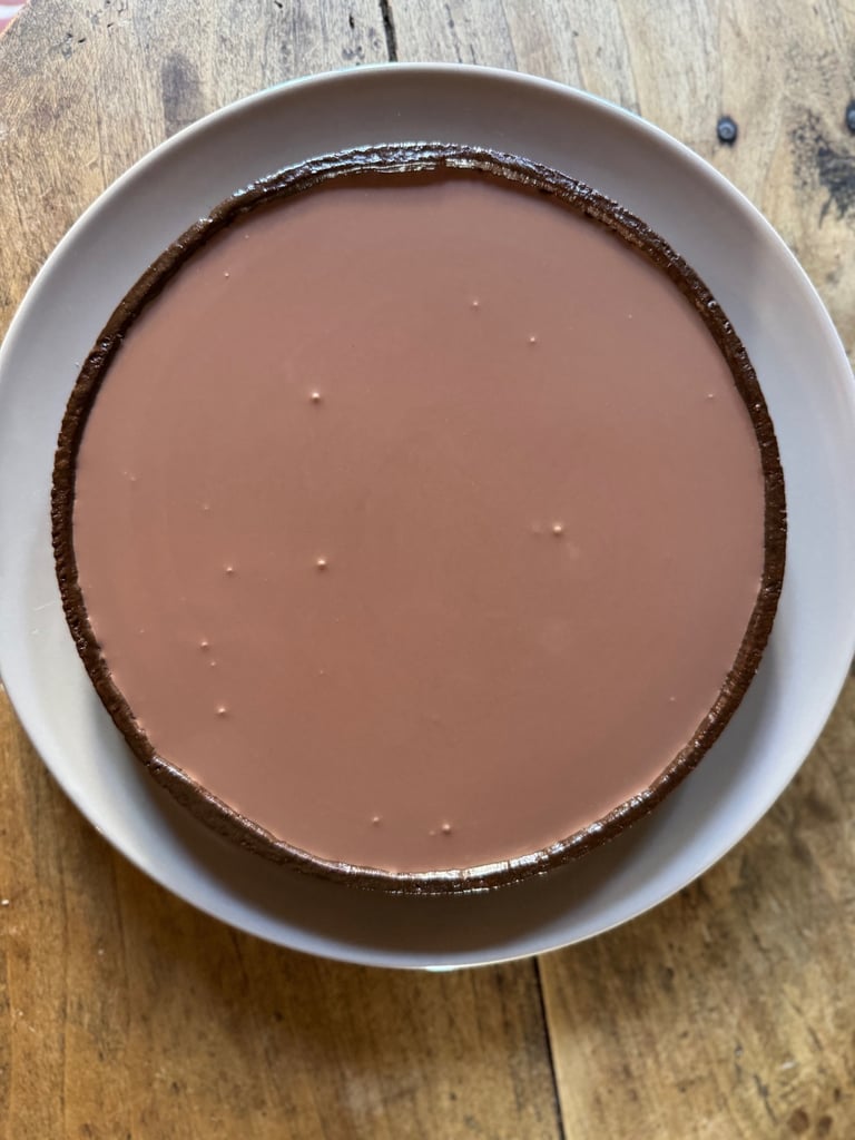 Verser la namelaka dans le fond de tarte et réserver au réfrigérateur pour minimum 4 heures.
