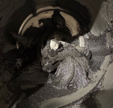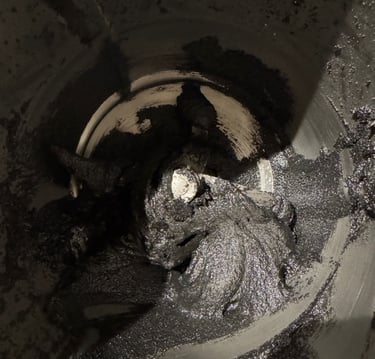Mélanger le sucre glace, la poudre d'amandes, la farine, le charbon et le beurre au batteur muni de sa feuille, jusqu'à obtention d'une pâte sablée puis ajouter l'oeuf et stopper le batteur dès que la pâte est homogène. Réserver au moins deux heures au réfrigérateur.