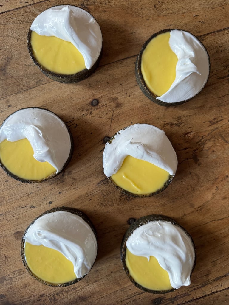 Mettre le gel au citron vert dans une poche à douille et venir verser sur la partie du crémeux où il n'y a pas de meringue.