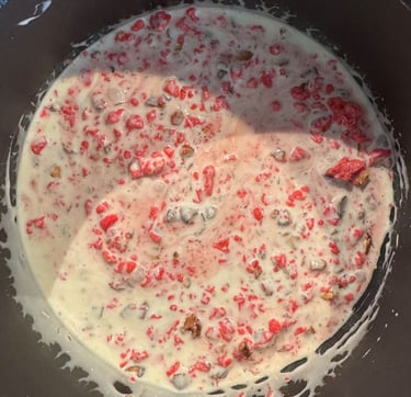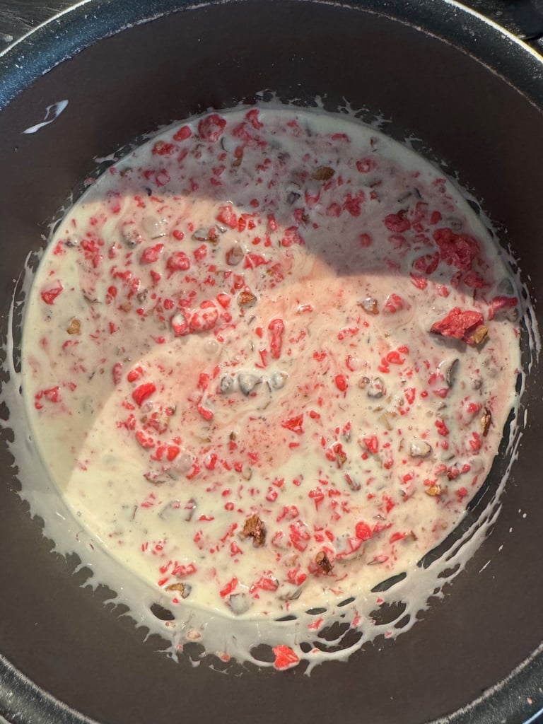Dans une casserole porter à ébullition les pralines concassées et la crème liquide jusqu'à environ 100°C.