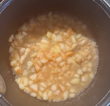 Dans une petite casserole, faire chauffer les morceaux de poire et le jus de citron. Ajouter le sucre et la pectine préalablement mélangés. Porter à ébullition et poursuivre la cuisson pendant deux minutes. Réserver.