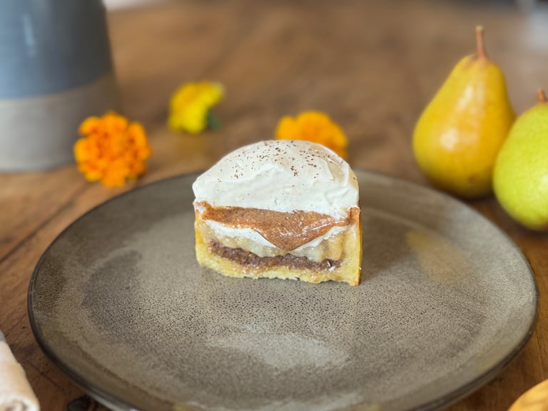 L'automne arrive doucement, et avec lui une envie de douceur et de réconfort. C'est exactement ce que cette tarte promet ! L'association de la poire et de la pécan vous enveloppera dans un cocon de bien être ! Régal garanti !